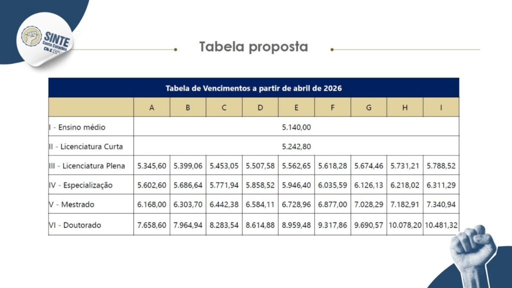 No dia 11 de março de 2026 ocorreu a assembleia estadual do Sindicato dos Trabalhadores em Educação de Santa Catarina (Sinte-SC). Cerca de 600 trabalhadoras e trabalhadores se reuniram na praça Tancredo Neves, em Florianópolis, para decidir sobre a proposta de carreira enviada pelo Governador Jorginho Mello (conhecido como “Pequeno Jorge” pela categoria).