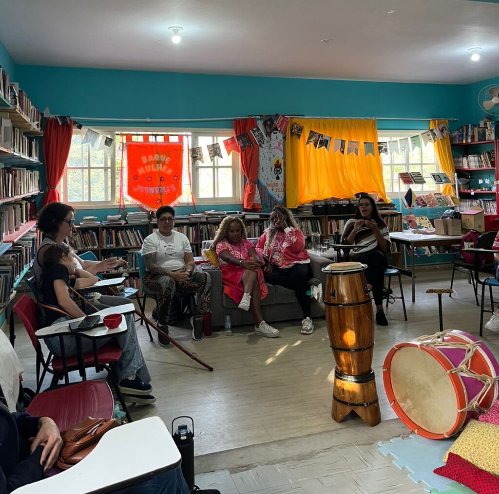 Os tambores foram ao encontro dos livros no último sábado (2). Os Baque Mulher de Joinville e Itajaí realizaram uma roda de conversa intitulada “Maracatu, capoeira e experiências femininas em liderança”.